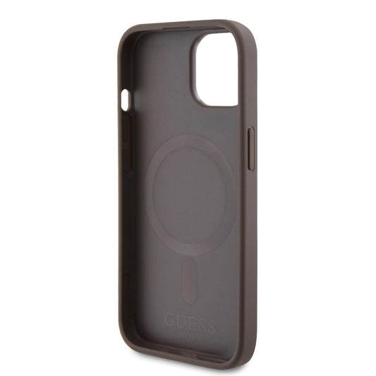 Guess iPhone 15 Hardcase - Magsafe - 4G Pu Bottom - Brown